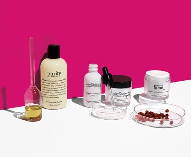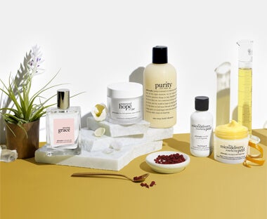 philosophy inspires beauty beyond skin care with products that transform, results that instil confidence and wisdom for wellbeing. the words on philosophy packaging are our philosophies on life. and our philosophy on skin care is simple: cleanse daily, peel weekly and treat the skin with expert formulas, returning the skin to its ideal state. the philosophy collection includes skincare, perfumes and a variety of gift sets.